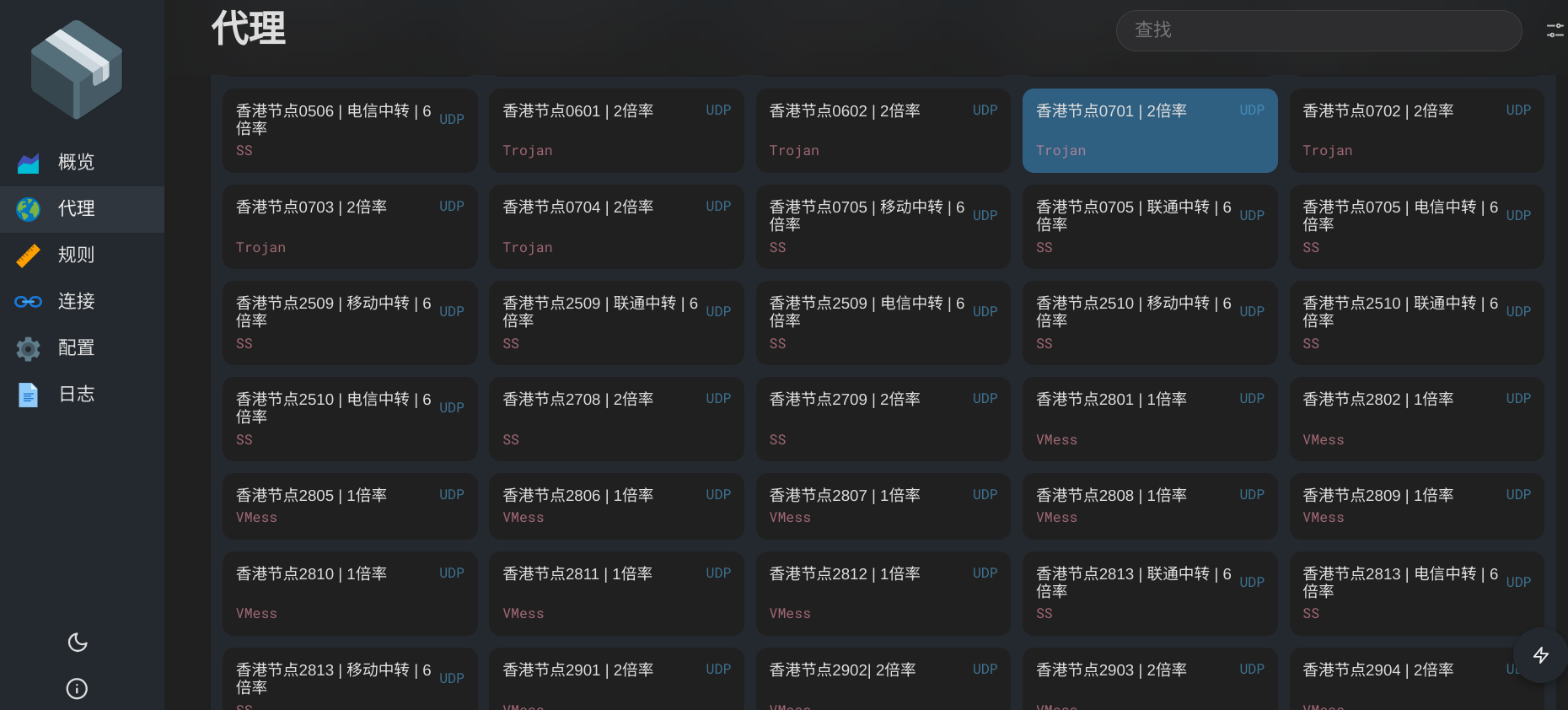 可以进行节点测速,节点切换等操作。